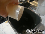 Для замеса теста я использую хлебопечку, можно замесить тесто вручную. Для этого в мерный стакан (у меня 230 грамм) разбиваю яйцо…