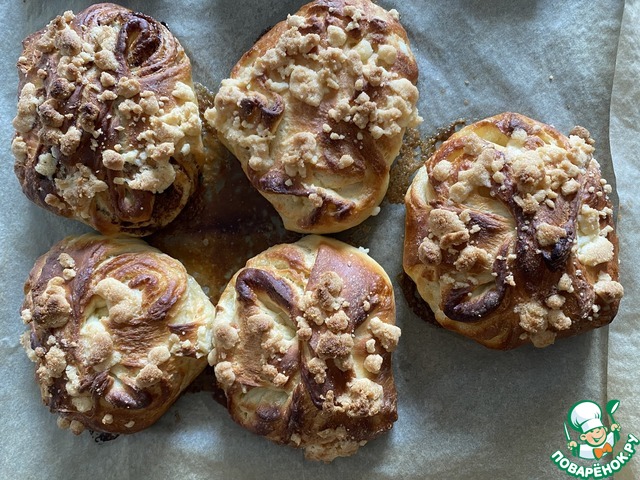 Описание: Наверное, это один из самых "долгих" рецептов, который я когда-либо готовила. Но ваши усилия будут оправданы, поверьте! Вкус тот самый! Из детства! Я помню, как мама приносила с работы эти слойчатые булочки с посыпкой. Я тогда очень хотела научиться делать такую крошку на булочках, так сильно она мне нравилась!