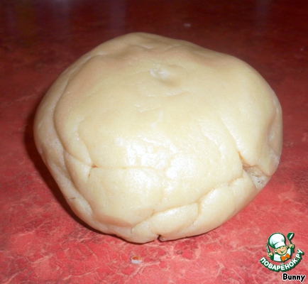 75 г масла порезать на маленькие кусочки. Муку, масло, сахарную пудру и 1 яйцо смешать в гладкое тесто. Тесто завернуть в плёнку и положить в холодильник, примерно на 30 минут.