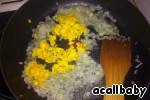 На разогретой сковороде поджарить лук 2 минуты, добавить раздавленный зубчик чеснока (по вкусу)