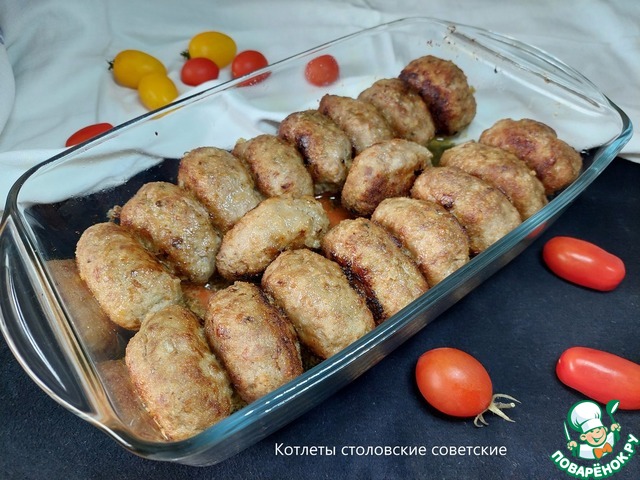 Начитавшись звездных ГОСТовских рецептов Ларисы, погрузилась я в воспоминания детства, и, в частности, вопросы кулинарных пристрастий СССРовских времен. И вспомнились мне советские столовско-санаторные котлеты. Наверняка, кто-то из поварят постарше помнит, что в советские времена в общепите предлагали, помимо прочих блюд, котлеты. Лично мне эти котлеты нравились, так как домашние котлеты из отличного мяса, которые готовила мама, казались мне слишком мясными. А у столовских был какой-то особенный вкус. И воспроизвести его у меня не получалось до недавнего времени. Я списывала это на хорошее мясо, которое использовала (думаю, в столовские шло мясо не высшего, мягко говоря, качества). Оказывается, в способе их приготовления есть нюанс, о котором я и не догадывалась. Приготовив эти котлеты, я поняла: это - тот вкус из детства! Рецепт из интернета. Взяла за основу идею рецепта satsh и с его разрешения выкладываю его здесь. Надеюсь, кому-нибудь пригодится.