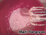 • Яйцо взбить с сахаром, добавить соду, уксус и ванилин, перемешать.