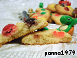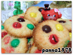 Ставим противень с печеньем в разогретую до 180 градусов духовку и выпекаем 10-15 минут до золотистого цвета. В результате получаем яркое, с шоколадными конфетками, со слегка потрескавшейся глазурью печенье. Из этой порции у меня получилось 24 печенюжки.