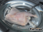 1/2 перепелки кладем в кастрюльку, заливаем водой и варим примерно 30 минут. Я брала нижнюю часть перепелки, так как нам нужны будут ножки!
