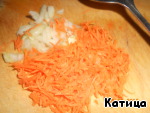 Морковь нужно натереть на мелкой терке, лук нарезать мелкими кубиками.