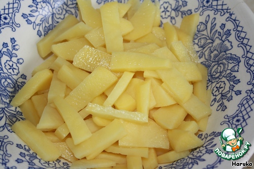 Картофель почистить, помыть, нарезать соломкой или кубиками.
