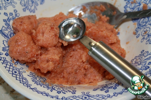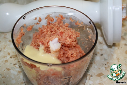 Приготовить фрикадельки: филе рыбы и размоченный кусочек хлеба перемолоть в блендере или перекрутить на мясорубке.
