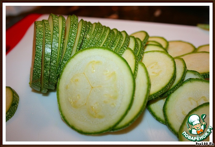 Кабачок нарезать тоненькими кружочками.