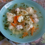"Питательный обед". Как разнообразить меню своих малышей? Я нахожусь в постоянном поиске ответа на этот вопрос. Однажды смотрела передачу "Барышня и кулинар". Готовили они там какой-то супчик с сырными ньокками. Рецепт того супчика я где-то записала, а где - не помню. Жаль, конечно, но вот рецепт самих ньокк оказался настолько прост, что остался в моей памяти. Поэтому сегодня банальный суп с фрикадельками превращается в нежнейший супчик с сырными ньокками.