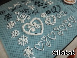 Это небольшое дополнение к рецепту, как при помощи айсинга украсить привычные вещи, идея, конечно, не новая, но вдруг кому пригодится. Рецепт айсинга не пишу, так как на сайте есть. Готовую смесь выкладываем в корнетик или в п/э пакет, в пакете, соответственно, делаем маленькое отверстие. Рисуем любой понравившейся узор, у меня на коврике для выпечки были такие варианты. Даем основательно высохнуть. И украшаем!