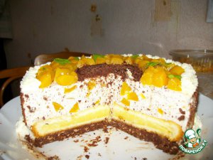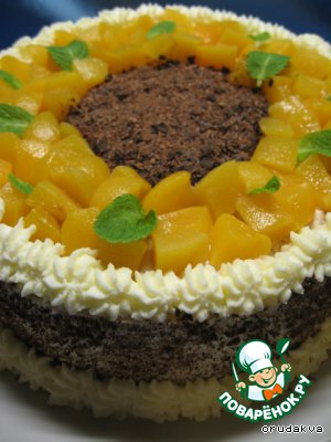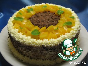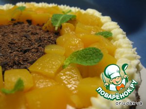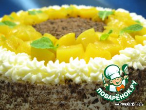 Сразу небольшое отступление. В оригинале торт делается с папайей. Но я не рискую покупать эти плоды в своем городе, а законсервированную кашицу из них трудно нарезать на кусочки! Поэтому, уже в который раз, заменяю папайю персиком. Если кто-то захочет воссоздать этот торт в оригинале, то нужно банку консервированных персиков заменить на 3 папайи.
