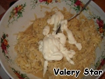 Добавляем майонез и перемешиваем.