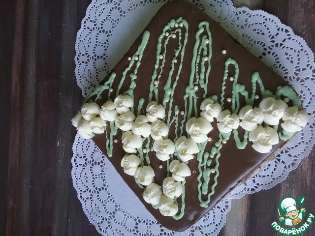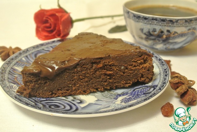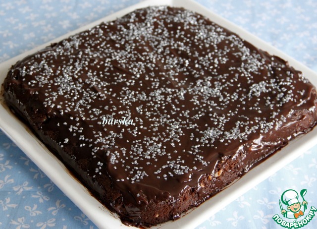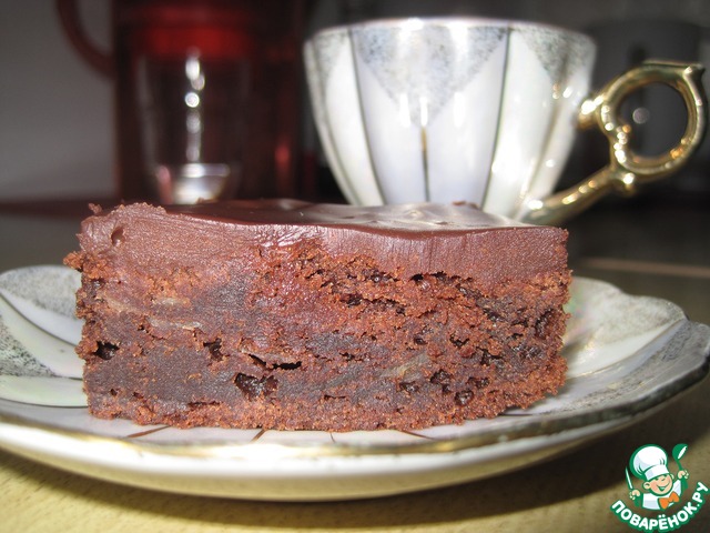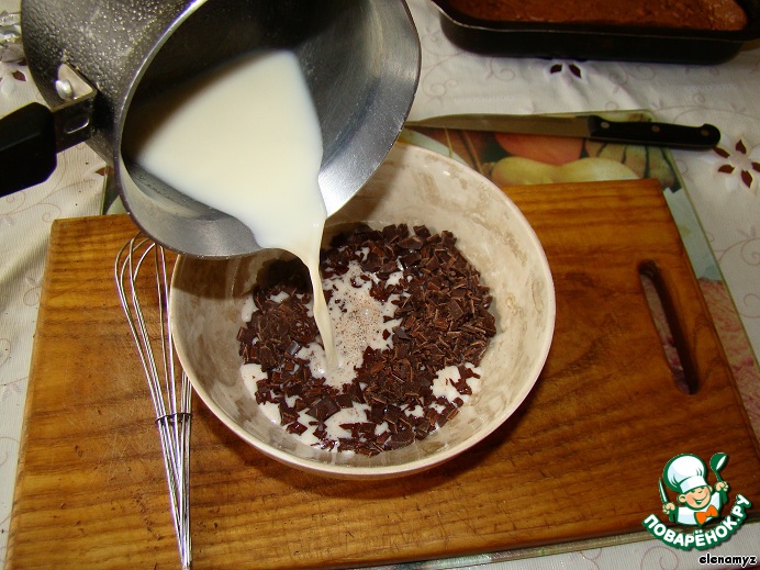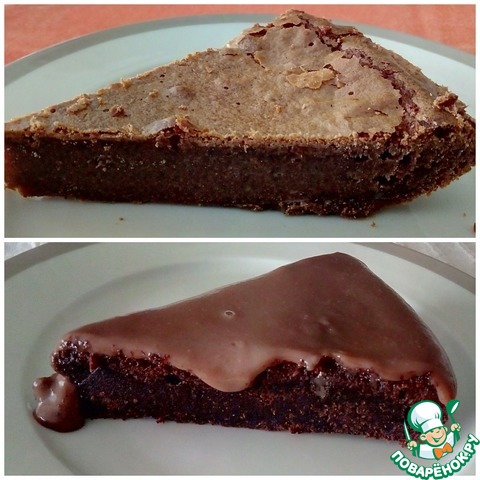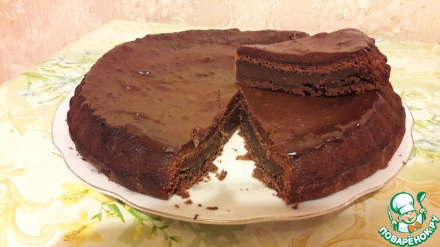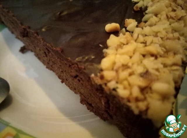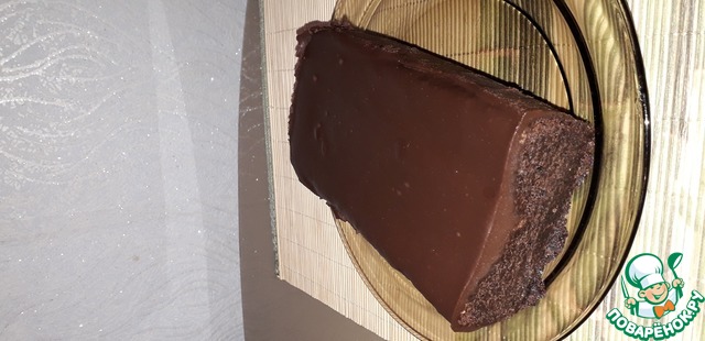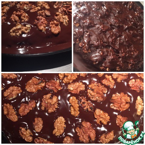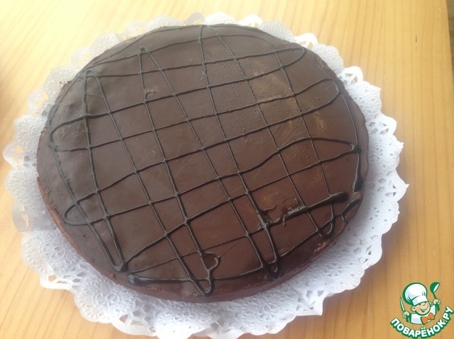 Готовый корж вынуть из духовки и остудить, покрыть шоколадной глазурью (ганаш) и убрать в холодильник на 2-4 часа (или на ночь), он должен настояться до подачи.