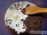 Влить горячие сливки в шоколад и оставить на 2-3 минуты, тщательно перемешивая.