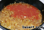 Вынуть отбивные. В оставшемся после их жарки масле и мясном соке потушить репчатый лук, нарезанный кубиками, до прозрачности. Затем добавить томатную пасту или свежие помидоры, очищенные от кожицы и мелко порезанные. Протушить до густого состояния. В конце добавить нарезанный свежий базилик (или щепотку сухого), соль, зубчик чеснока, мелко натертый.