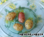 4 картофелины хорошенько отмываем и ставим варить в пароварку - это наши будущие лапоточки.