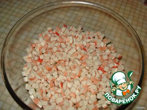 3. Крабовые палочки, смазываем майонезом.