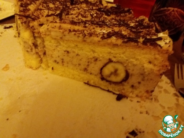 Очень вкусный торт,просто замечательный!Бананы резала помельче,на вкусе это к счастью не отражается.Оля,большое спасибо за рецепт!