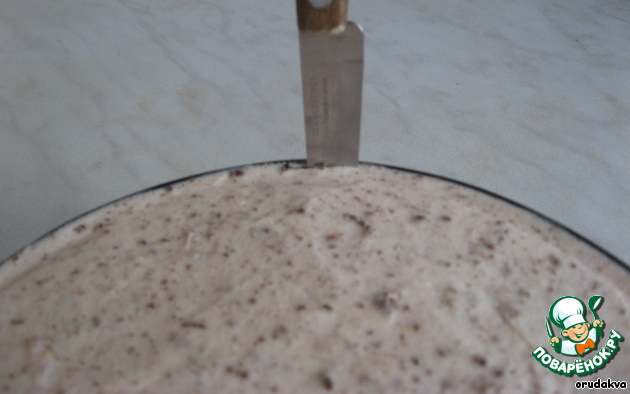 • Поверхность обмазать кремом так, чтобы он стекал по краям торта между ним и кольцом. Торт убрать в холодильник минимум на 2 часа.