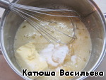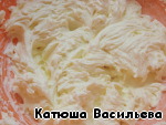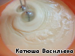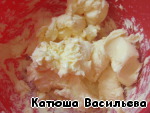 Затем добавлять, пока они взбиваются, уже взбитое масло,