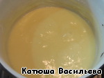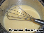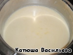 Остальную часть молока довести до кипения и, при постоянном помешивании, тонкой струйкой влить в яично-сахарную смесь, перемешать.