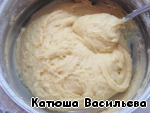 Соединить желтки с сахаром, слегка взбить до однородной массы, добавить крахмал, муку, перемешать, если масса получается очень густая, добавить немного холодного молока. -