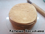 Выпекаем коржи при температуре 200 градусов. Коржи пекутся быстро, в зависимости от духовки - 3-7 минут. Выпеченные коржи складываем стопочкой, охлаждаем при комнатной температуре.