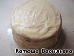 И так до самого конца. Верхний корж тоже мажем кремом и убираем торт в холодильник на ночь.