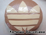 Из неокрашенной мастики вырезаем значок adidas и переносим его на торт. Смазываем водкой с мёдом.