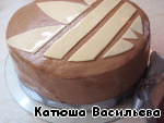 Покрываем тортик раскатанной мастикой, смазываем раствором водки и мёда 1:1 для блеска. И обвязываем основание тортика атласной ленточкой.