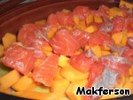 Мой дебют на "Поварeнке" - замечательно вкусное и простое в исполнении блюдо. В оригинальном рецепте вместо свежего лосося был указан копчeный. На мой вкус и взгляд. лучше свежий, но если кто-нибудь из поварят решится на копчeную рыбу, дайте знать. Важно: не берите тыквы маленьких сортов (например Хоккайдо), они имеют очень выраженный вкус.
