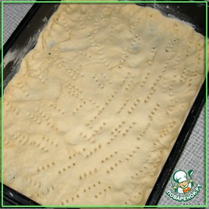Половину теста выложить в форму, наколоть вилкой.