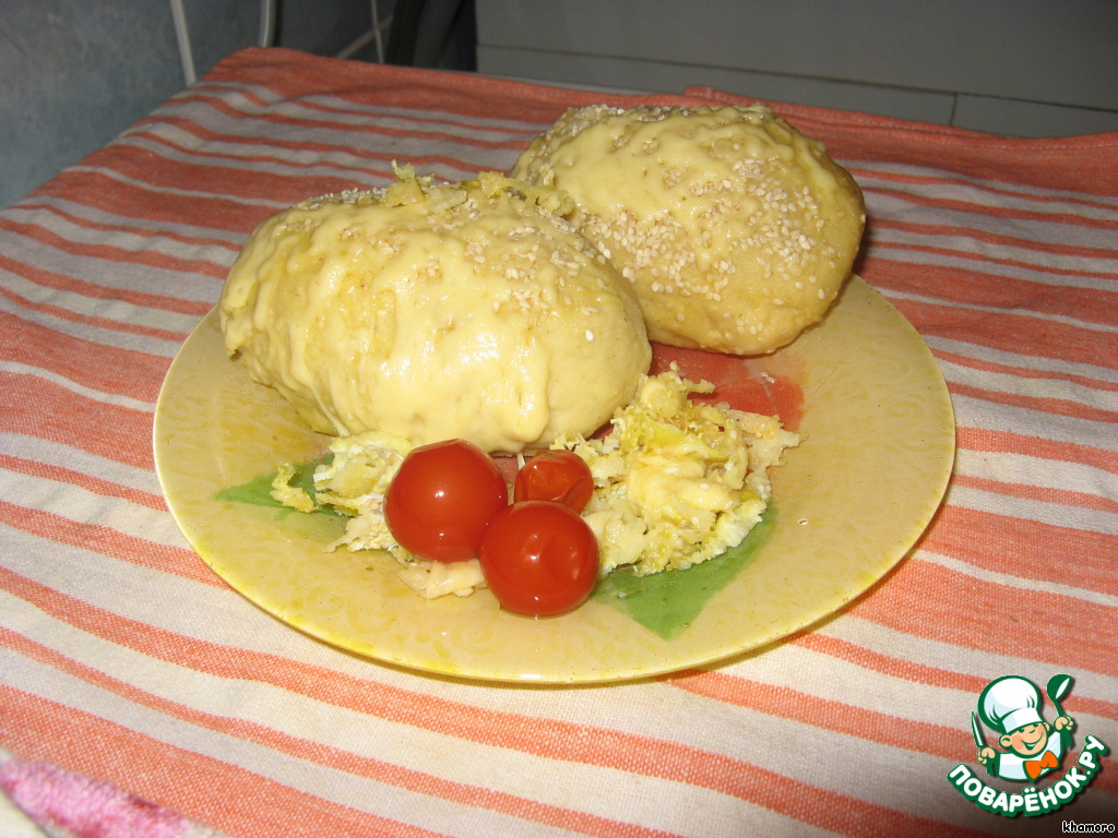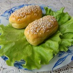 Сливочное масло растопить, добавить 1 яйцо, перемешать. Смазать им «колбаски», сверху посыпать их кунжутом.
