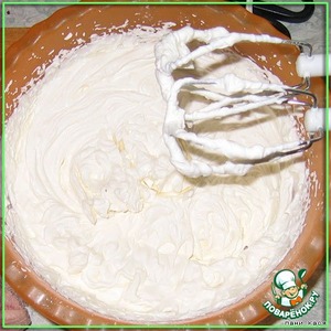 Сливки взбиваем с сахаром, туда сырок (можно и без сырка, но у меня был), добавляем желатин