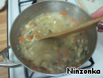 Добавляем муку и даем покипеть, помешивая, минуты 3.