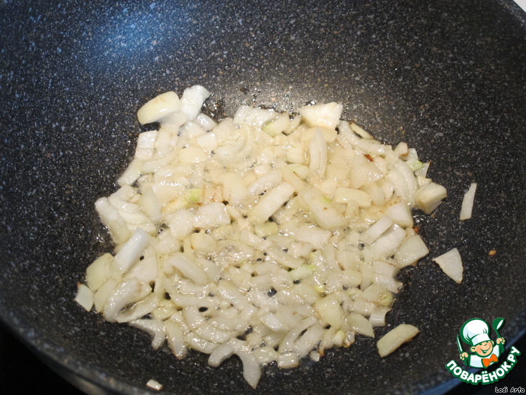 В разогретом растительном масле быстро обжариваем лук, 2 минуты.