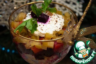 Делаем заправку Мелко режем лук + измельченный чеснок + Горчица + Уксус+ Оливковое масло + Сок апельсина (лимона) + Соль + перец |