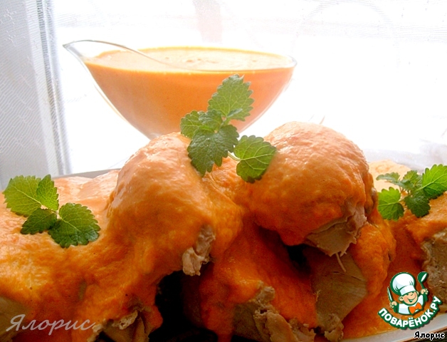 Для тех, кто предпочитает вечером лeгкое мясо, предлагаю вот такой вариант ужина. Соус делает это блюдо просто неповторимым. Тем, кто любит посытнее, можно добавить рисовый гарнир.