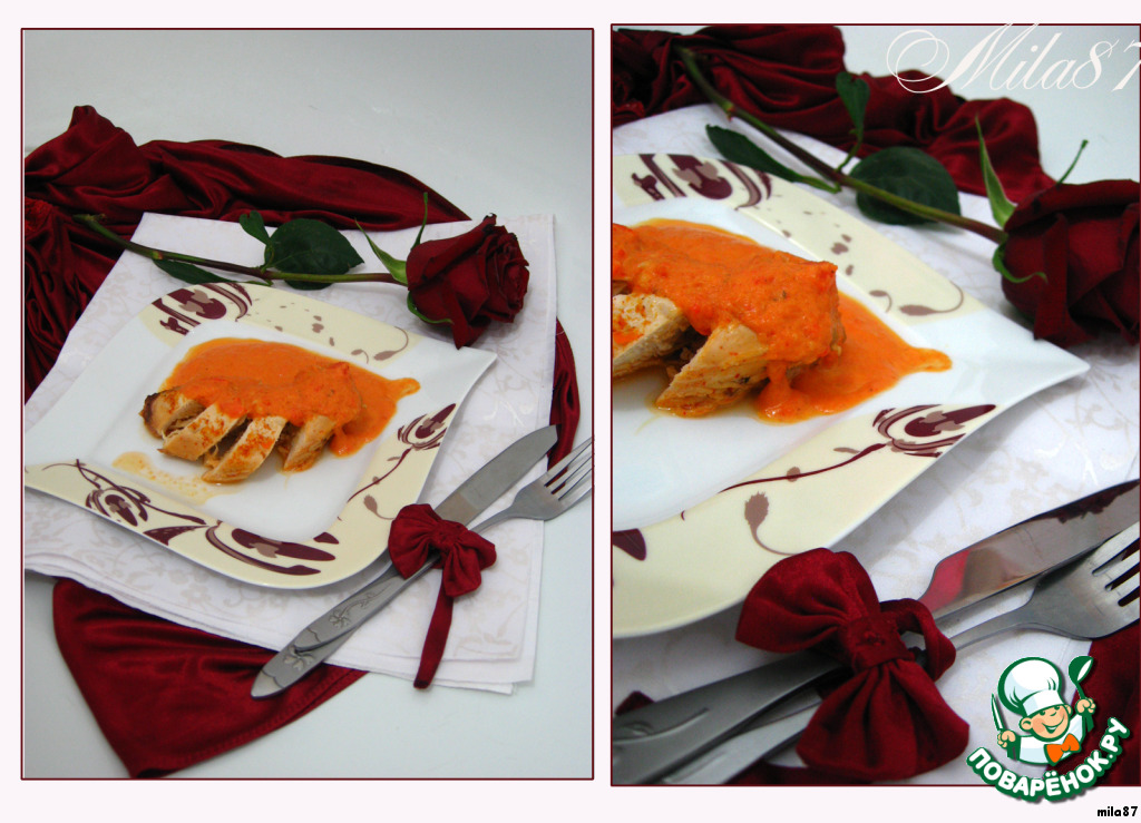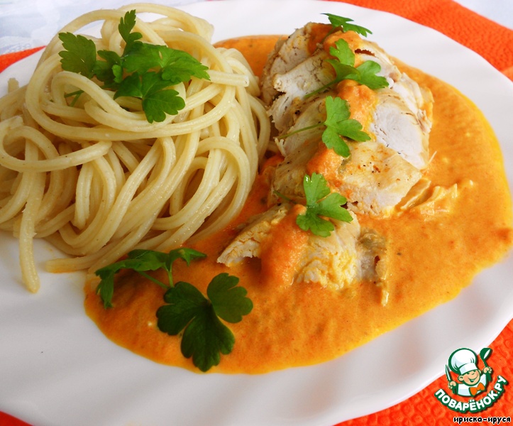 Рецепт «Куриные грудки в кремовом овощном соусе»:
