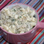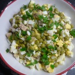 В идеале в этом салате присутствует зеленый лук, но я признаюсь честно, сегодня у меня его не было. Поэтому я добавила 1 маленькую мелко нарезанную луковицу и 1/2 пучка укропа.