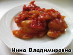 Затем к луку мы добавляем томат (у меня домашний). У меня ушло 7-8 столовых ложек.