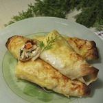 Рецепт «Запечeнные блинчики с творожно-овощной начинкой»: