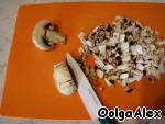 Шампиньоны нарезаем небольшими кубиками. У меня грибочки чуть «перезревшие», поэтому не очень красивые.
