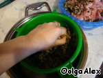 …солим по вкусу и хорошо вымешиваем нашу начинку.