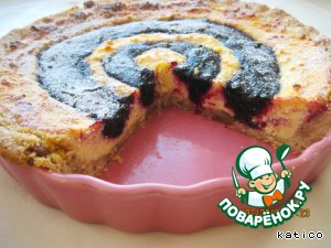 Описание: Еще один рецепт про творог и варенье. "Фишка" этого пирога в оформлении и в том, что начинка из джема не растекается, и пирог прекрасно сохраняет форму при нарезке. Хрупкая песочная основа с орехами, на ней нежный творог и фруктовый джем (у меня черная смородина).