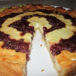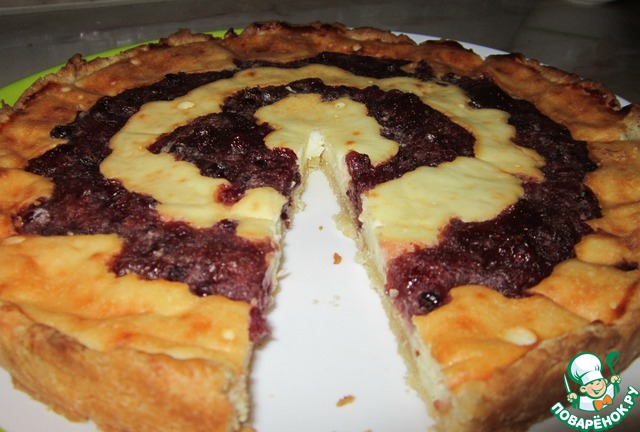 Описание: Еще один рецепт про творог и варенье. "Фишка" этого пирога в оформлении и в том, что начинка из джема не растекается, и пирог прекрасно сохраняет форму при нарезке. Хрупкая песочная основа с орехами, на ней нежный творог и фруктовый джем (у меня черная смородина).