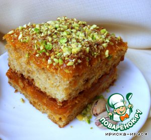 Рецепт «Бисквитное пирожное с абрикосовым повидлом и фисташками»: