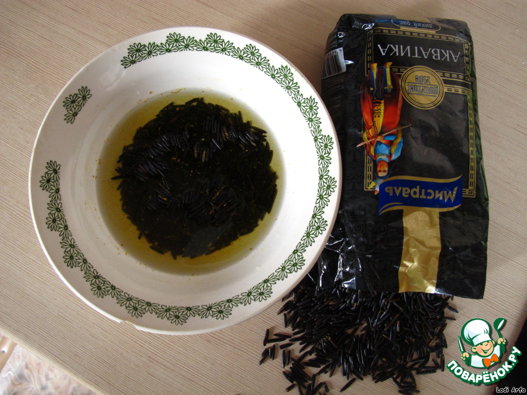 Начнём с дикого риса, замочим его на час, а потом отварим в течение часа.