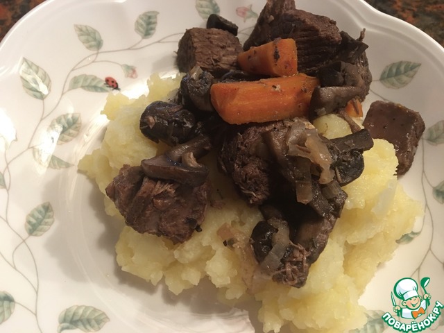 Beef Bourguignon. Недавно посмотрев фильм "Джули и Джулия" где героиня готовит это замечательное блюдо, я загорелась его приготовлением. Блюдо получается очень вкусным, с замечательным ароматом трав и красного вина.