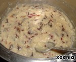 Смешиваем Рис, белки, сахар и сухофрукты по вкусу (у меня изюм и вяленая вишня) -